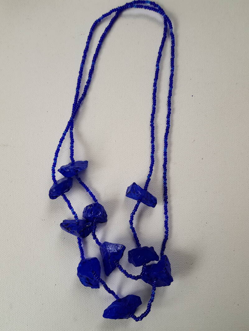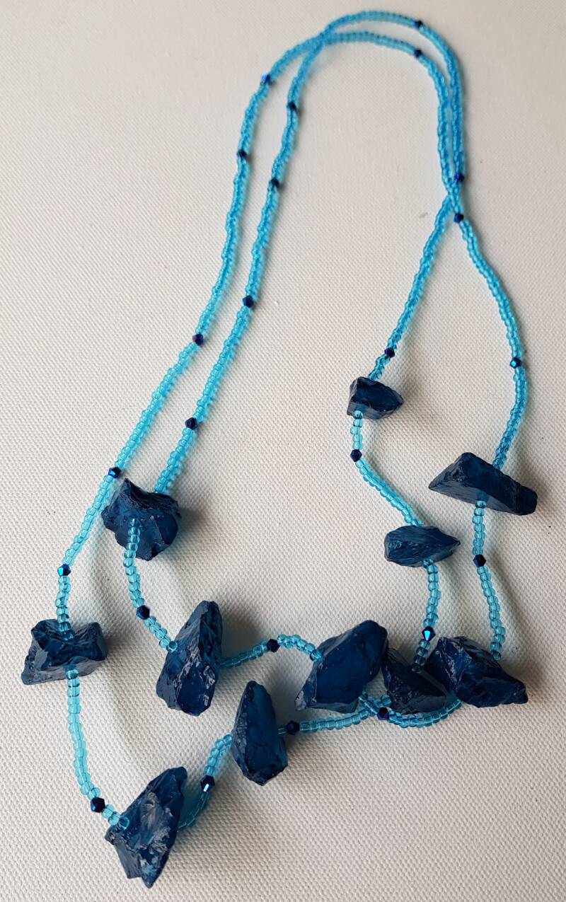 Material: raw rock crystal, acrylic paint, varnish, glass beads