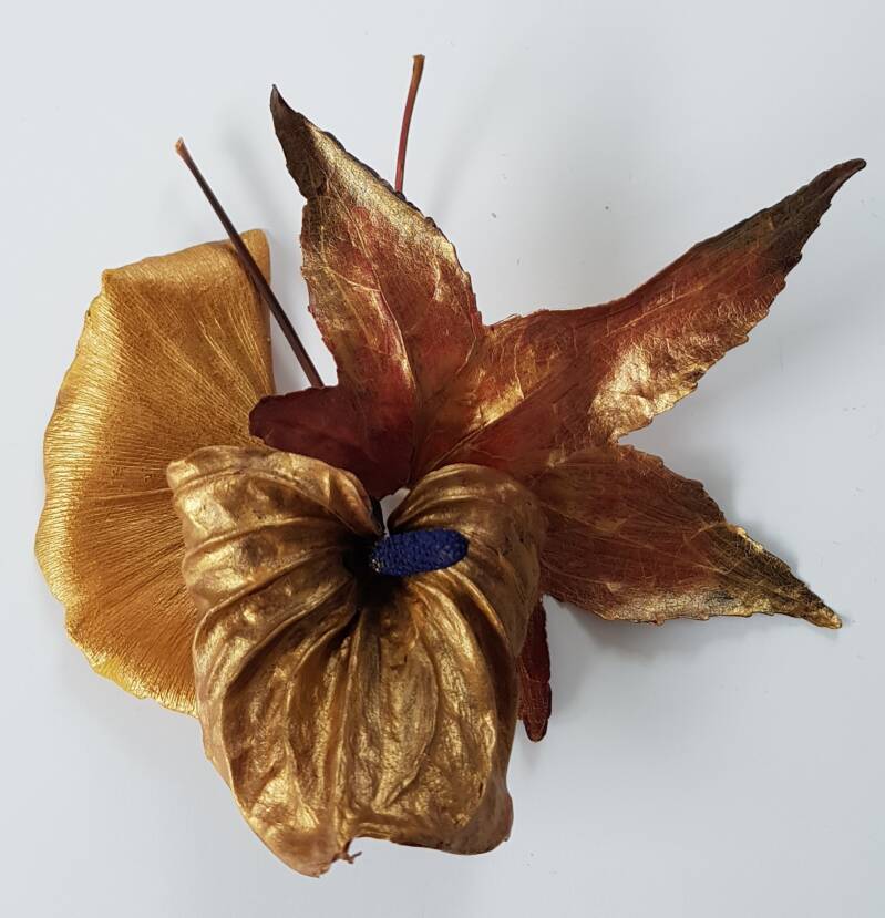 Material: dry leaf anthurium andreanum, dry leaf ginkgo, dry leaf Japanese Maple, acrylic paint