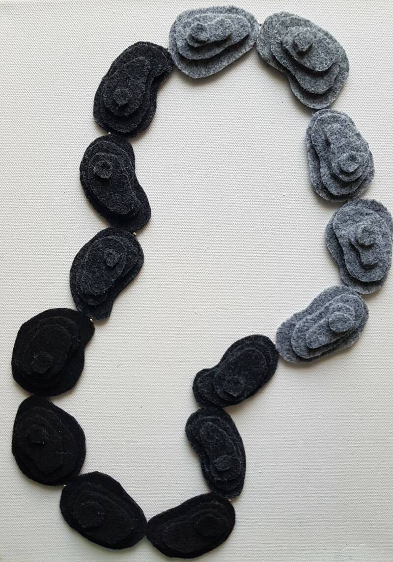 Material: Felt, varnish, glassbeads