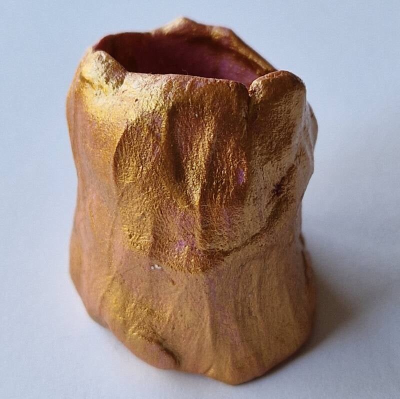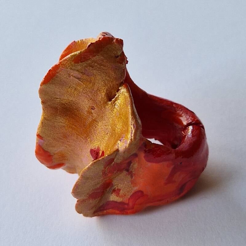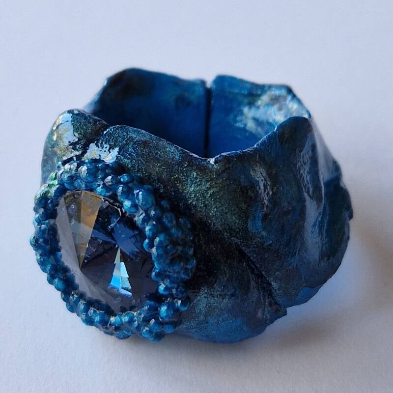 Material: silkclay, acrylic paint, varnish, mica, swarovski