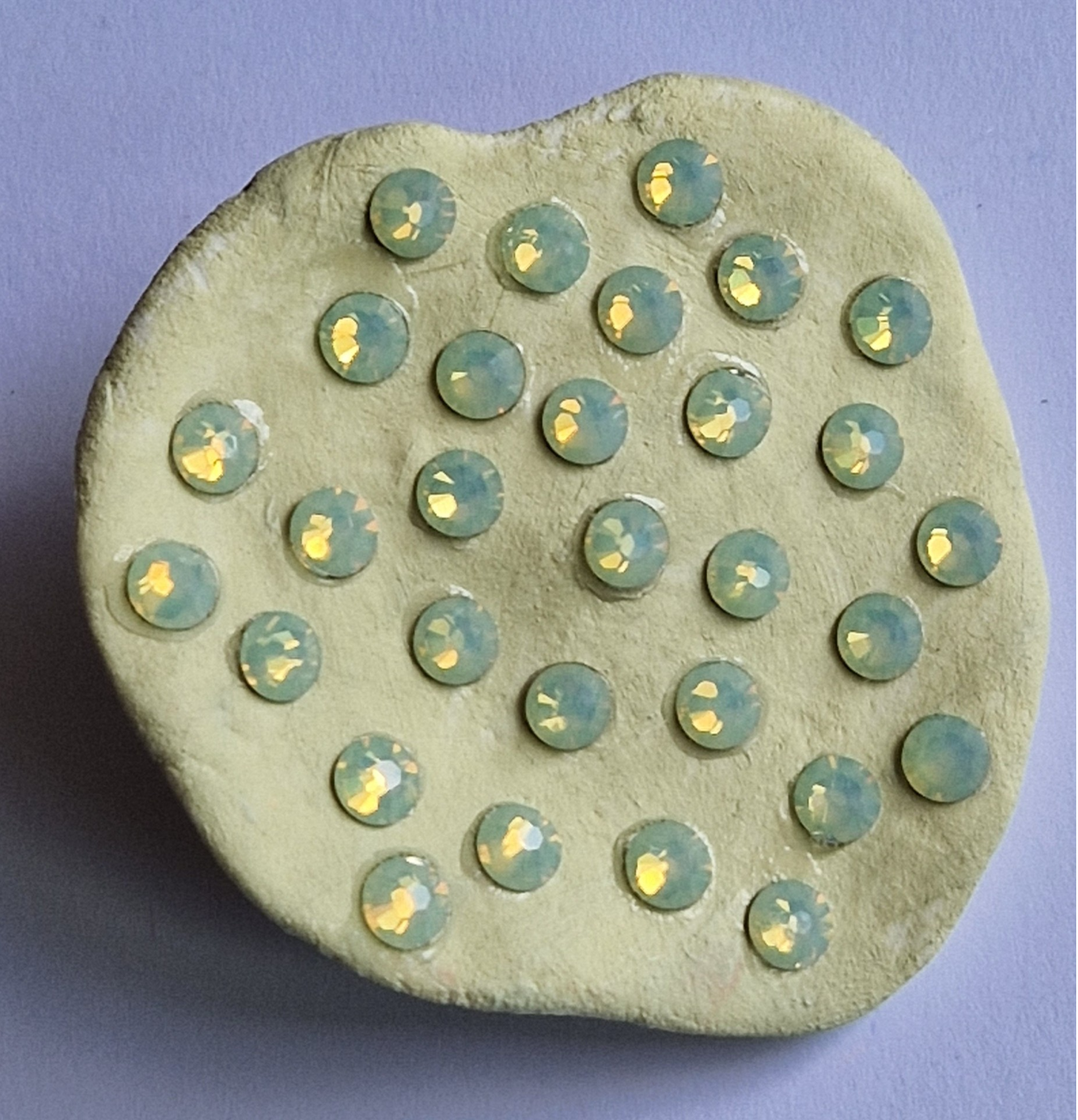 Material: Silk clay, arcylic paint, swarovski crystal, metal