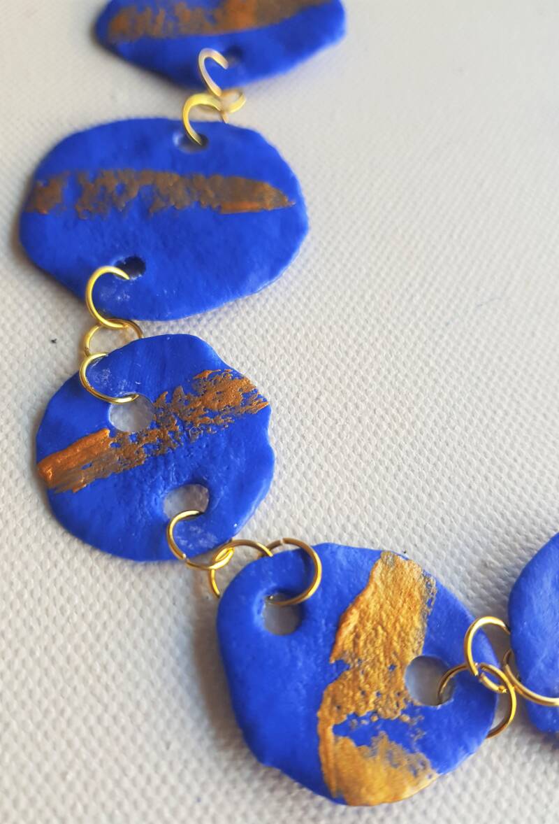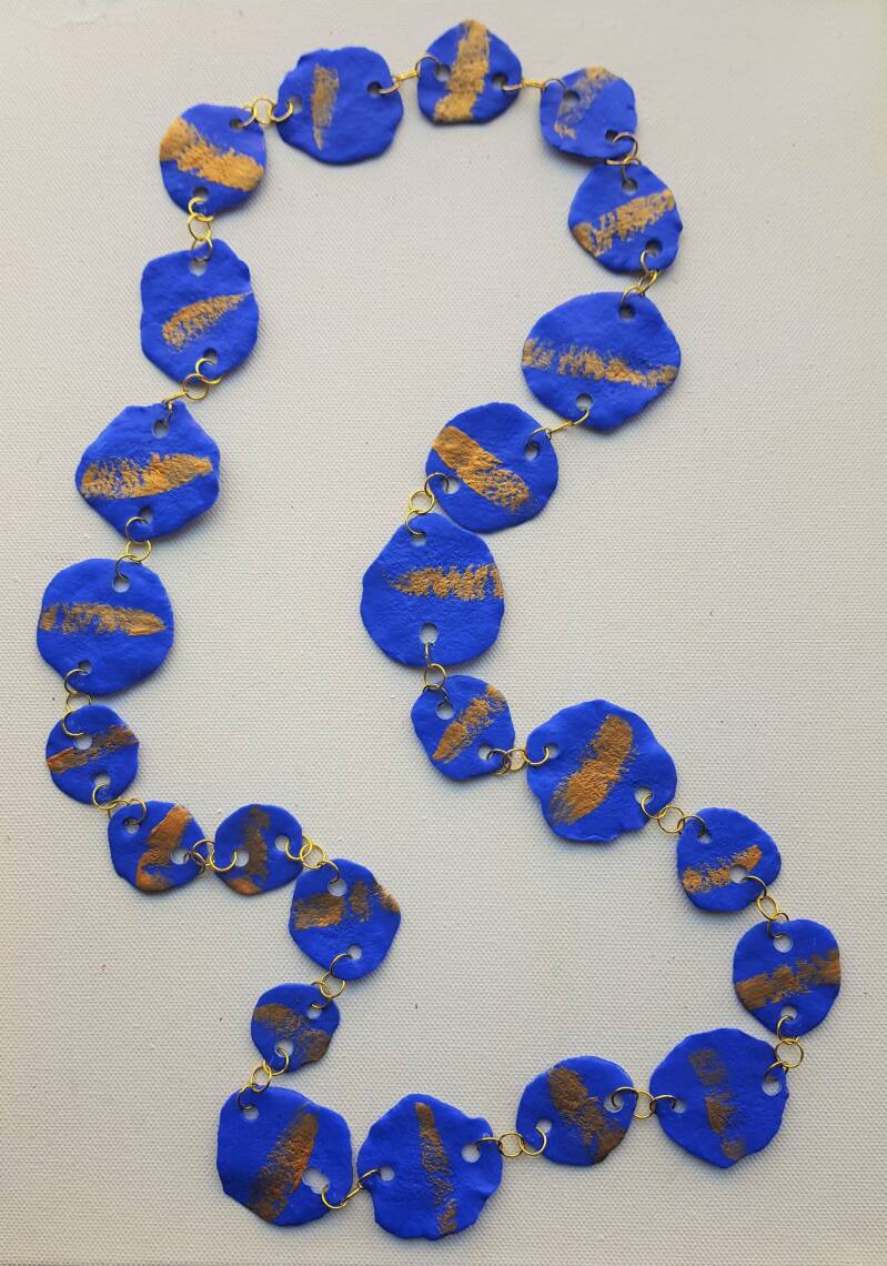 Polymer clay, acrylic paint, stainless steel