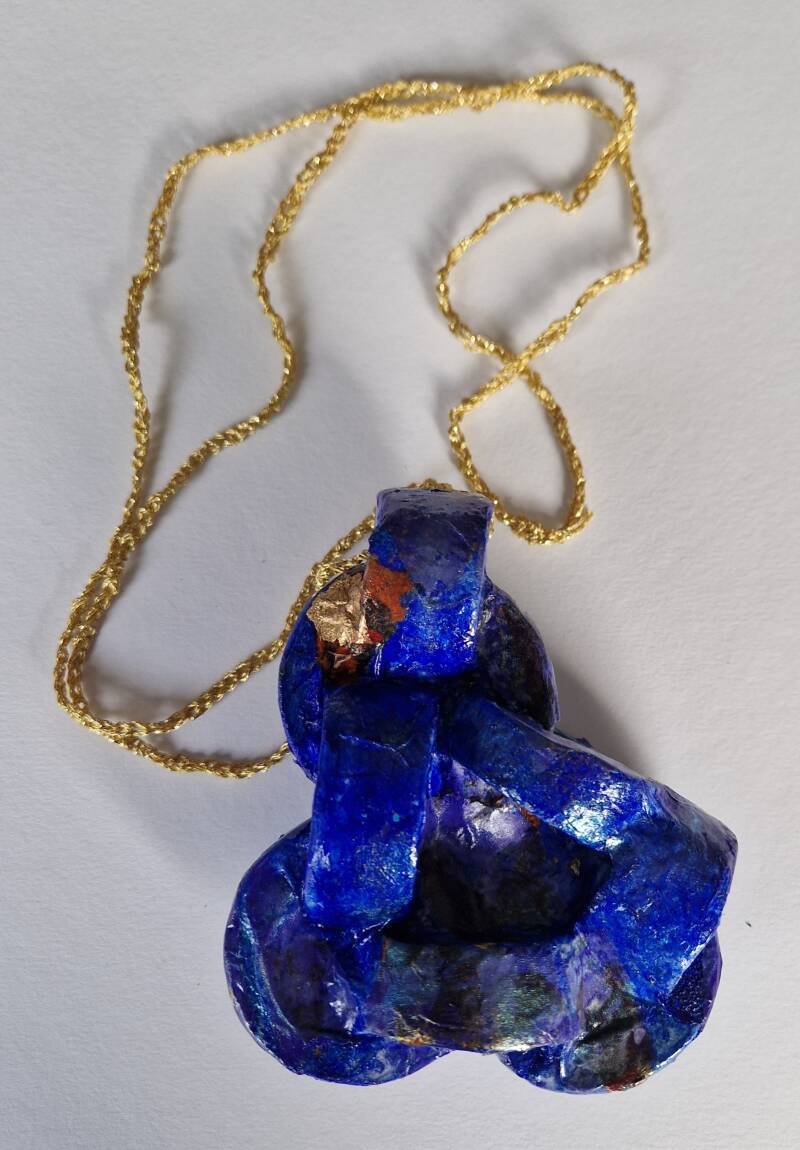 Material:Pipe insulation (polyurethane-foam tubing), glue, paper, paint, mica, swarovski stones, 1 mtr glass beads, lurex thread, gilded chain 9 kr.